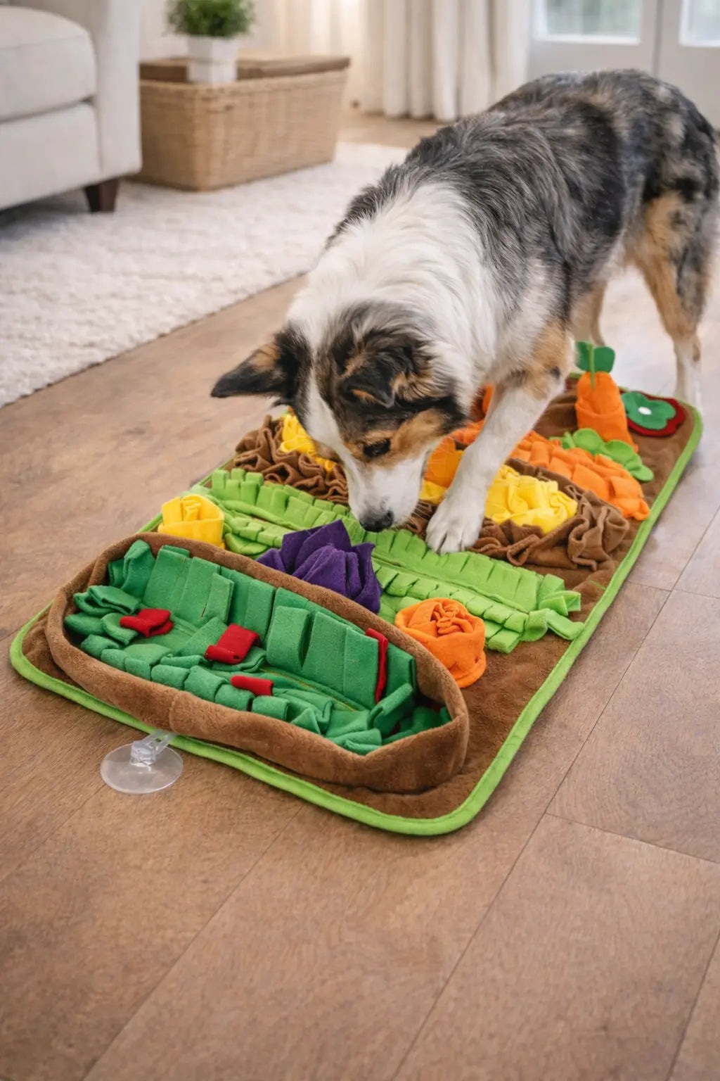 Most dogs are wired to search for food rather than eat it from one spot. A standard bowl encourages fast, repetitive eating, while a snuffle mat turns feeding into an active, scent-driven task that better matches how dogs naturally engage with food.